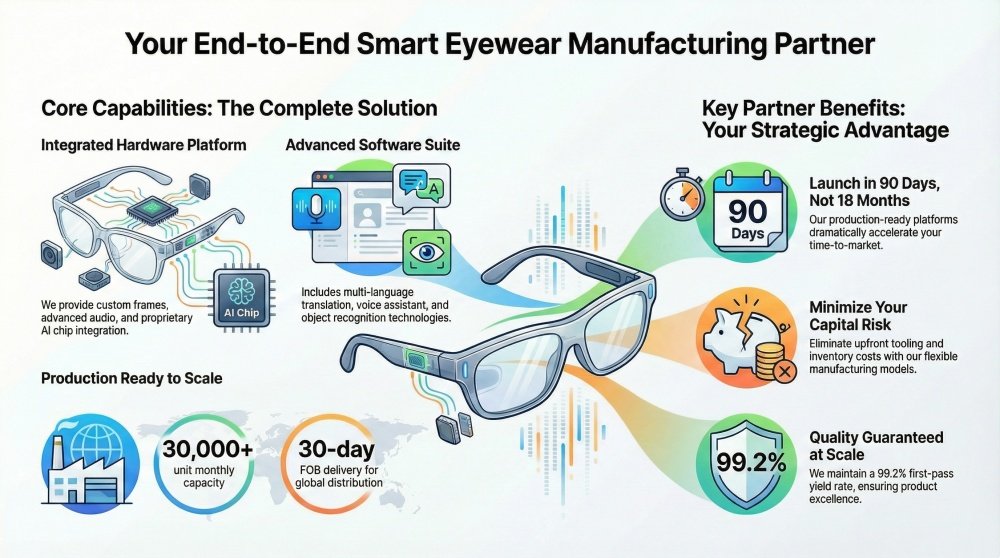 Our eyewear includes real-time translation, voice assistant integration, object recognition, gesture control, and health monitoring features.